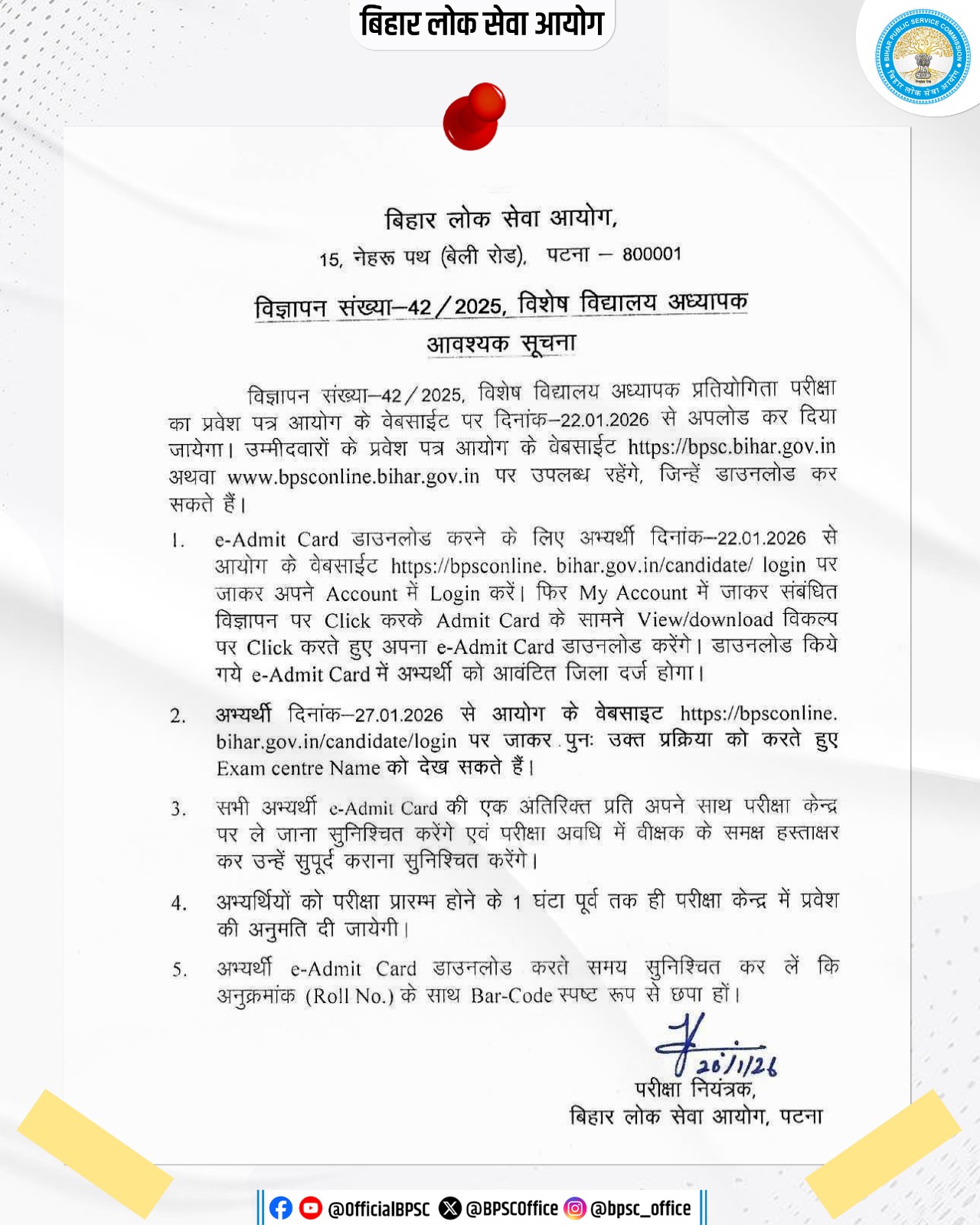 - Candidates are advised to confirm from the Bihar BPSC official website.