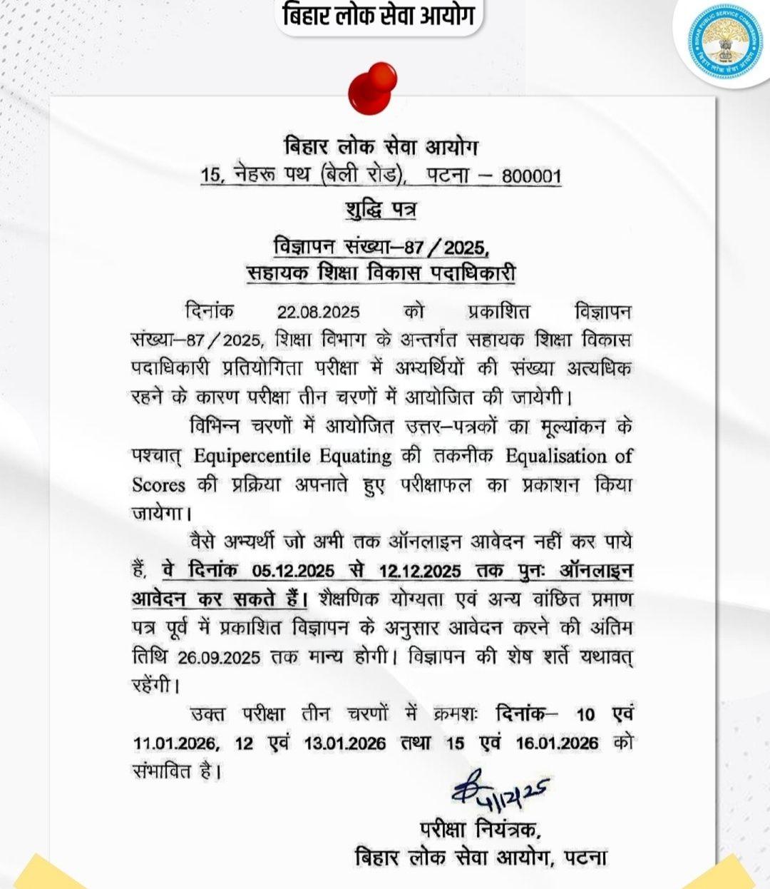 - Candidates are advised to confirm from the Bihar BPSC official website.