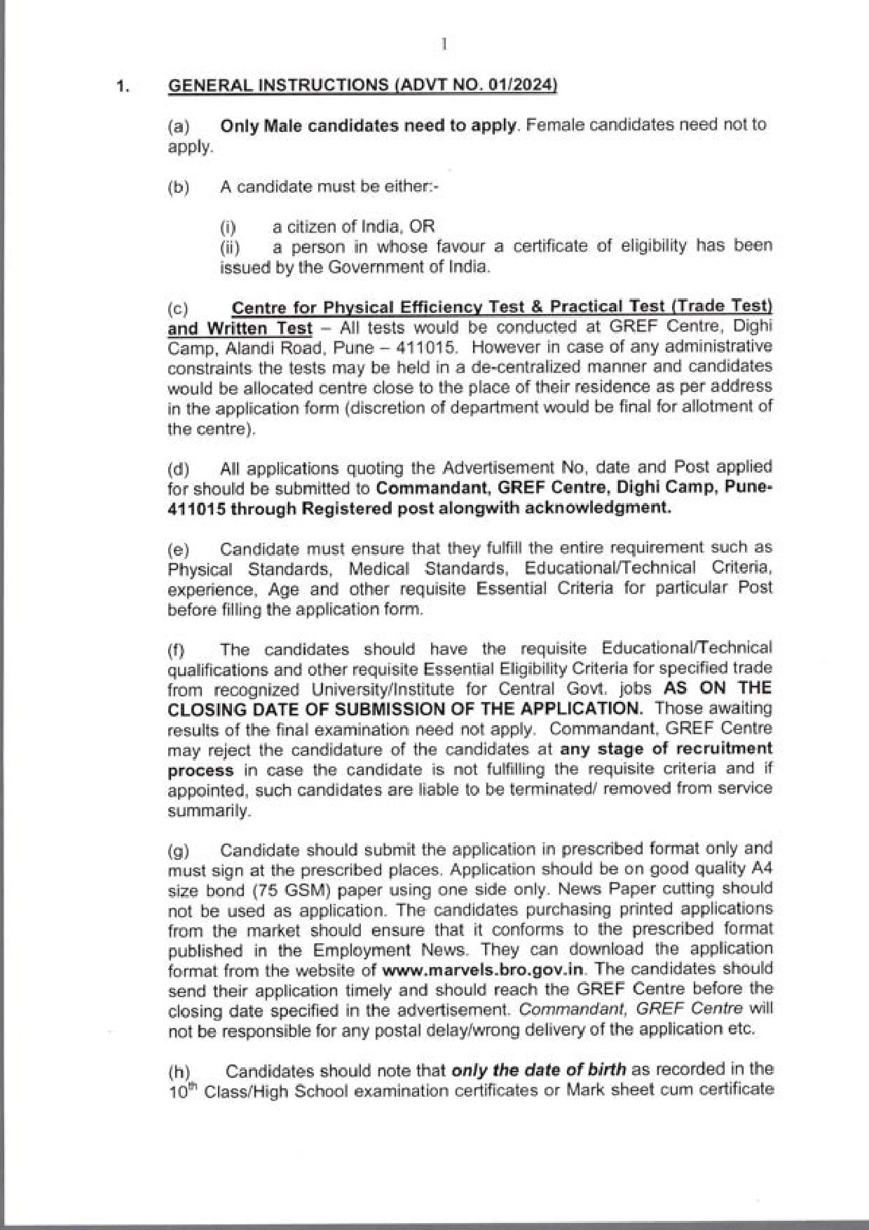 - Age में छूट BRO Various Post के नियमानुसार दिया जायेगा।
